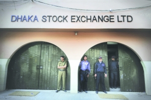 ▲当地时间2011年1月10日,孟加拉国达卡股票交易中心关门。孟加拉股市当日暴跌9.25%后,交易所停止交易,而愤怒的股民冲向街道抗议,并和警察发生了冲突。IC图片