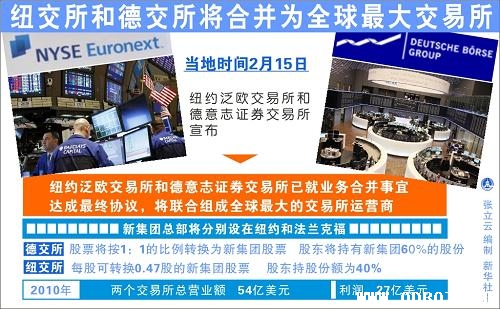 纽约泛欧交易所和德意志证券交易所15日宣布,双方已就业务合并事宜达成最终协议,将联合组成全球最大的交易所运营商。