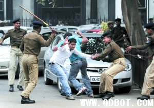 24日,新德里,警方殴打参加游行的反对党人士。23日和24日,数万印度人示威抗议通货膨胀。