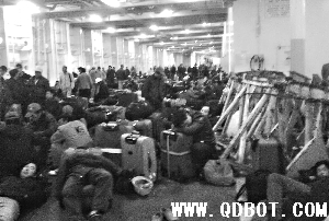 2月27日,中铁十一局五公司员工撤离至马耳他后,被临时安置在一艘客轮的底舱休息,躲避大雨。新华社发
