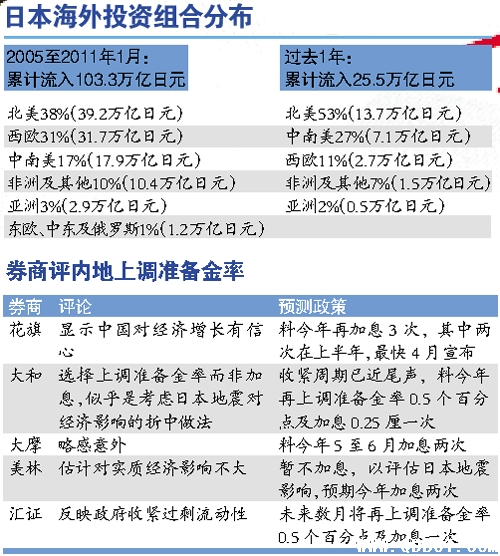 以环球资产计,据花旗资料显示,日本于海外投资(包括所有资产)由2005至2011年1月累计达103万亿日元(约9.98万亿港元),当中亚洲仅占3%。
