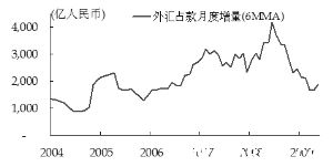 总体来看,我们目前尚未看到外币资金流入对人民币的被动投放形成更大的冲击,我们估计09年下半年月度外汇占款规模大约在2000亿左右,相比08年最高峰时期3000-4000亿的外汇占款已经收缩了近一半的规模。