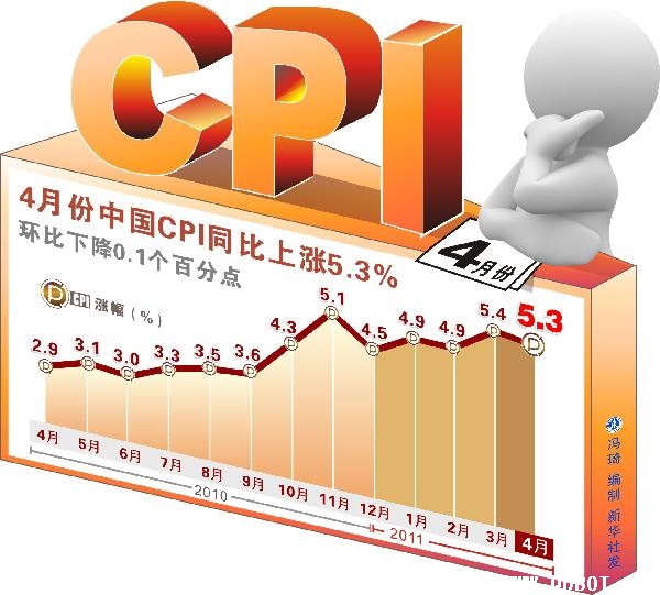 图表:4月份中国CPI同比上涨5.3% 新华社发