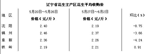 以下两表所示分别为国内部分产区和辽宁部分产区花生价格的波动情况。