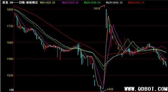 今日青岛国际商品交易所尿素主力合约CN1009,1566元/吨开盘,并未受到天然气提价的影响反弹,反而价格继续下破,最高1568元/吨,最低1556元/吨。尿素价格下逼1550元/吨,遭遇多头抵抗以及空头获利止盈的压力,价格有所企稳,成交频繁,收于1559元/吨,成交量144102手,增仓508手。K线上,有效下破5日均线,此次价格下跌的C浪下,继续下调可能较大,但是受到的成本支撑也越大。