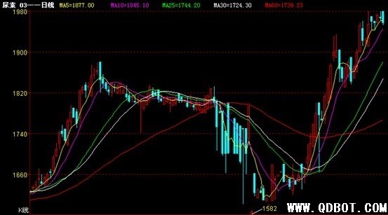 今日青岛国际商品交易所尿素合约CN1103,1980元/吨高开受挫,价格跌落,最低1952元/吨,收于1956元/吨,成交80820吨,增仓600。近期政府方面有想法通过调整关税来控制出口量,但尚未有具体的时间和明确方案出台,如果后期出口关税上调的话,尿素价格必然会应声而落。所以近期尿素多空分歧仍然较大。