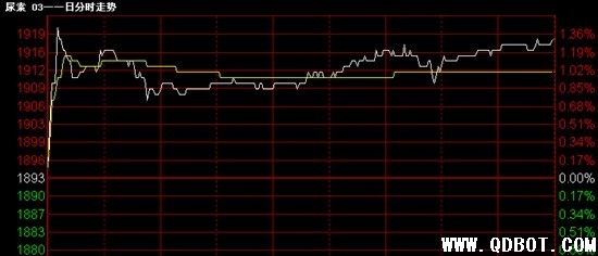 今日青岛国际商品交易所尿素合约CN1103,1895元/吨开盘继续上冲,最高1920元/吨,稍作调整,尾盘减仓拉高,收于1918元/吨,成交110740吨,减仓760吨。K线收稳60日均线,伺机上突。