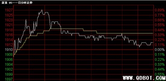 今日青岛国际商品交易所尿素合约CN1105,1906元/吨低开,价格上扬逐渐抬高,阻力增加,1927元/吨滞涨。多开争夺,现货疲软,空头强势再次把价格压住,收于1913元/吨,成交85520吨,增仓700吨。