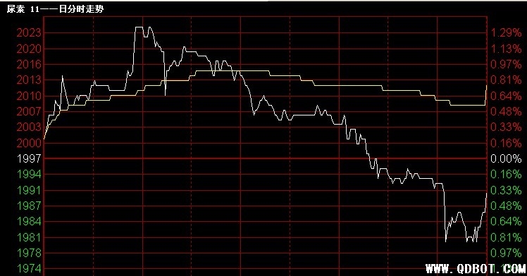 今日青岛国际商品交易所尿素合约CN1111,2001元/吨开盘,价格上冲最高2025元/吨,随着一部份减仓下压,价格一路下跌,打破2000元/吨,最低1980元/吨,收于1990元/吨,成交106620吨,增仓440吨。