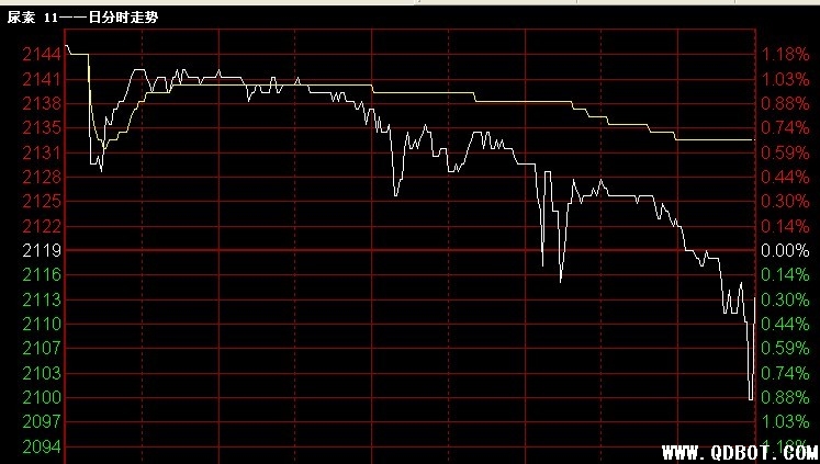 今日青岛国际商品交易所尿素合约CN1111,2145元/吨高开,早盘下探回收,午后价格难以维持,急速下跌,收于2113元/吨,成交99540吨,减仓1540吨。受到一定的出口影响,价格高开,但是多头信心仍然较弱,现货成交较淡,价格回落,获得暂时调整。