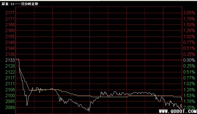 今日青岛国际商品交易所尿素合约CN1111,2134元/吨高开难以支撑,继续走跌打破2100元/吨,收于2089元/吨,成交100920吨,减仓640吨。