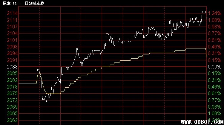 今日青岛国际商品交易所尿素合约CN1111,2080元/吨开盘,早盘价格继续探底2071元/吨,多头强势反击,价格反涨,最高2115元/吨,收于2111元/吨,成交95100吨,减仓360吨。