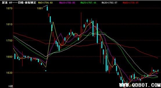 今日青岛国际商品交易所尿素主力合约CN1007,1638元/吨开盘,最高1642元/吨,最低1632元/吨,价格有一定的支撑,1630元/吨企稳。价格震荡区间收窄,方向性难判断,全天成交107154手,减仓650手。