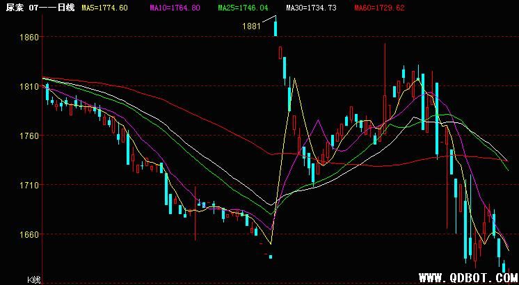 今日青岛国际商品交易所尿素主力合约CN1007,1615元/吨低开,多头护盘,早盘急拉最高1625元/吨,就目前尿素行业后市价格下落的情况下,空头坚决压制,打消多头反击的希望,价格一度达到最低1608元/吨,赶超现货价格。其后交易平淡,小幅震荡,午后多头再次蓄力发劲,带起一波小高潮,价格拉回原位,却未能站稳1620元/吨,收于1616元/吨,成交91408手,增仓14166手。