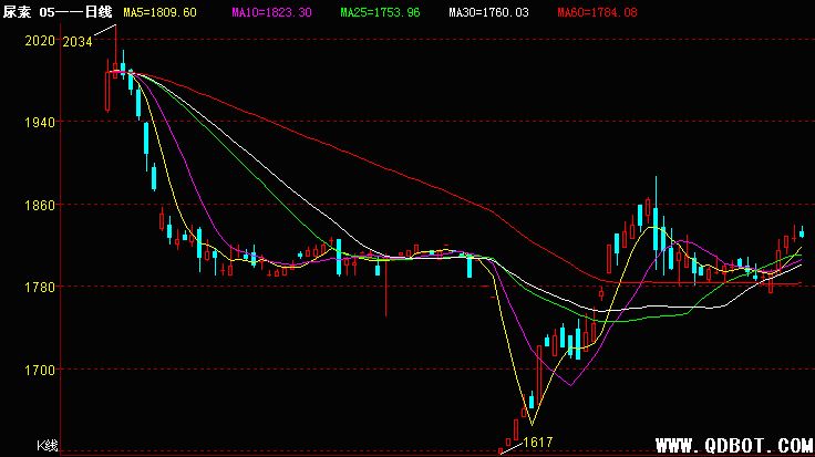 青岛国际商品交易所尿素主力合约CN1005,1833元/吨高开,上冲1840元/吨未果,受到现货跌势,价格迅速下跌至最低1827元/吨,收于1828元/吨,成交26204手,增仓84手。