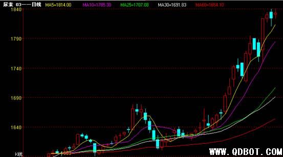今日青岛国际商品交易所尿素主力合约CN1003,1830元/吨开盘,上扬1840元/吨,下挫1823元/吨,早盘多空方积极参与,争夺幅度较大,午后价格行情相对平稳,波动区间不大,最终收于1833元/吨,成交10954手,减仓100。