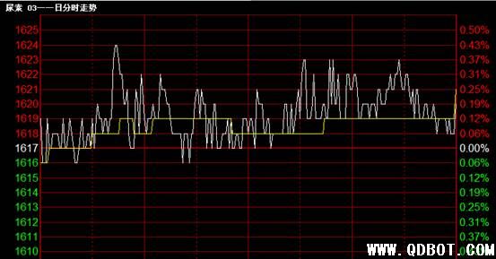今日青岛国际商品交易所尿素主力合约CN1003,1616元/吨开盘,最高1614元/吨,最高1624元/吨,成交20648手,增仓252手。今日价格分时图线分析多数在区间波动,应对近期尿素行情稳定情况,多空目前价格容易陷入分歧。