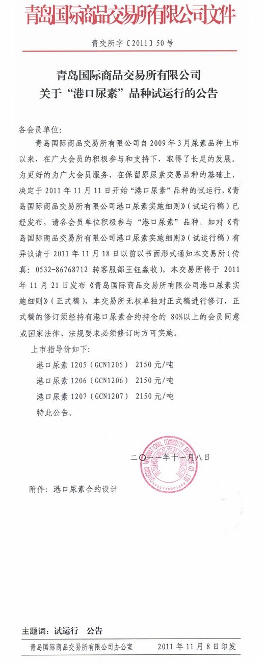 《青岛国际商品交易所有限公司港口尿素品种实施细则2011版》