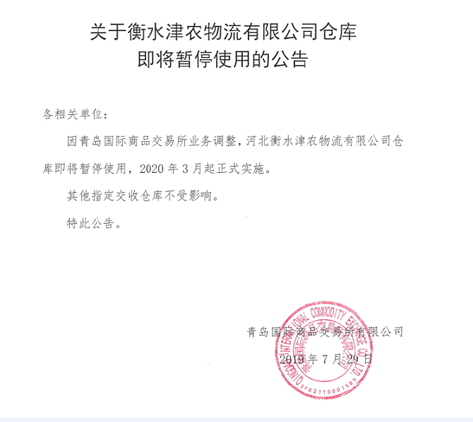 关于衡水津农物流有限公司仓库即将暂停使用的公告